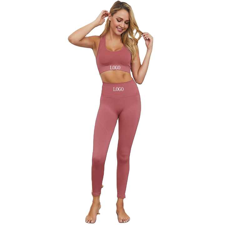 Conception personnalisée de vêtements de sport pour femmes adultes ensembles de gymnastique taille haute 100% coton sans couture avec motif solide sublimé