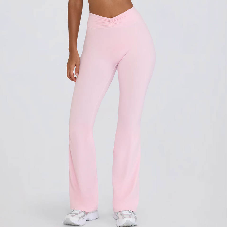 Legging de yoga personnalisé en Spandex et Polyester, taille élastique, coupe évasée unie pour femme, style unique