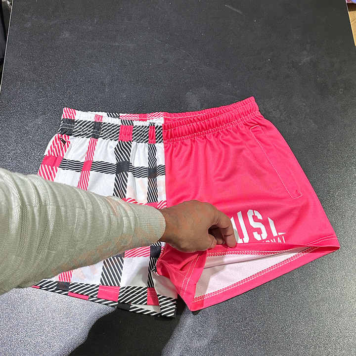 Shorts de rugby gingham bicolores personnalisés pour femmes, shorts de football australien avec poches, impression par sublimation