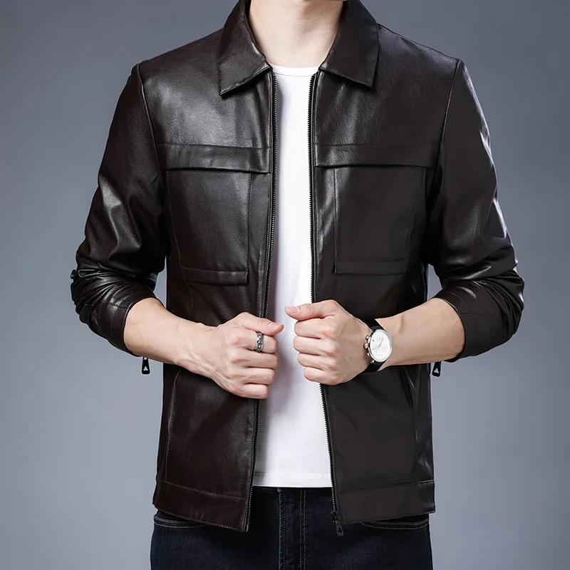 Veste en cuir avec logo personnalisé pour hommes Fermeture à glissière ou à bouton
