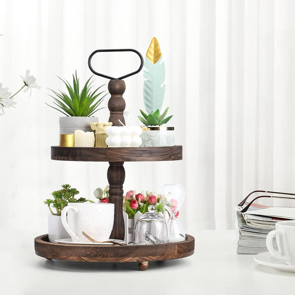 Custom Designed 2-Tier Wood Tray Farmhouse Style Decorative Stand for Cupcakes Dining Table for Weddings Table Decorations