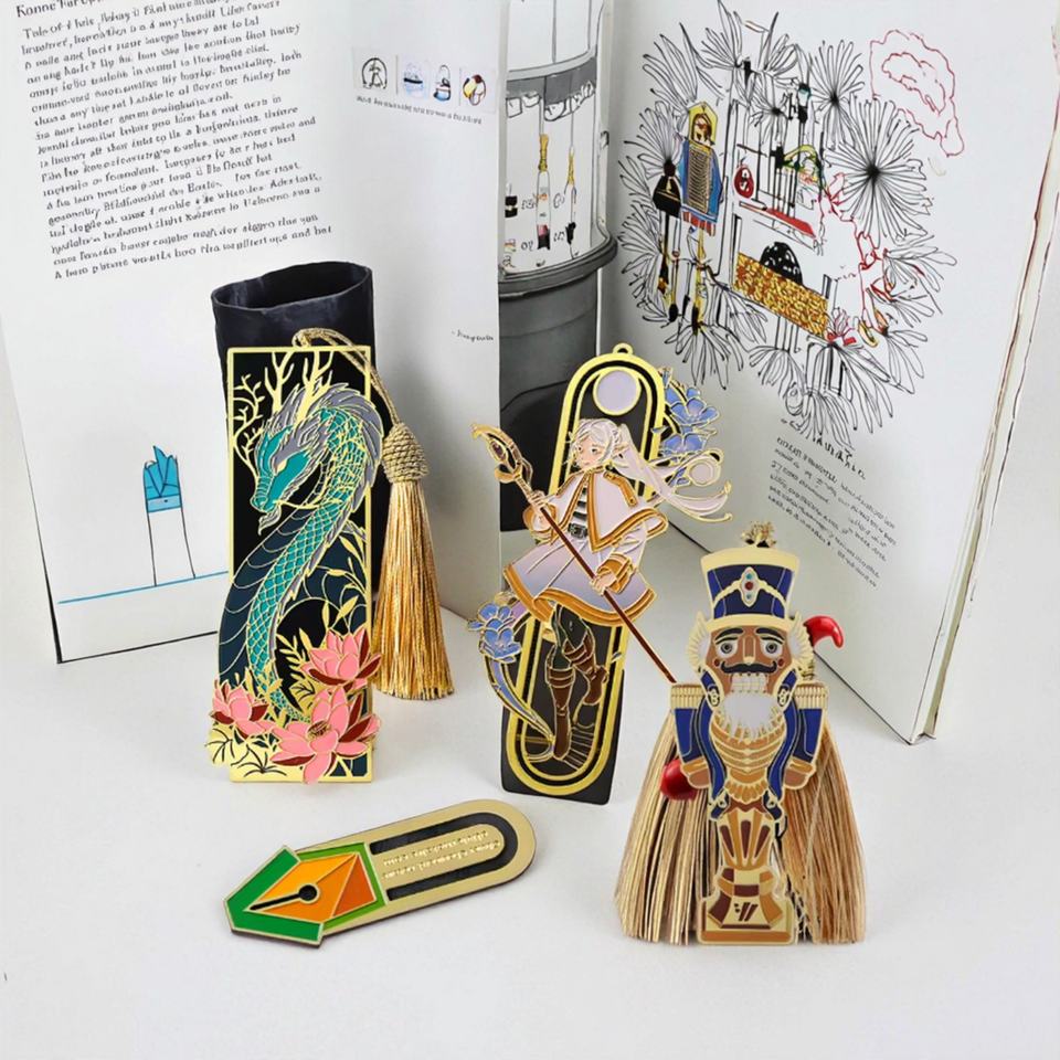 Marque-pages en métal en alliage de zinc émaillé, personnalisés avec des personnages de dessins animés 3D mignons, vente en gros, souvenirs de collection