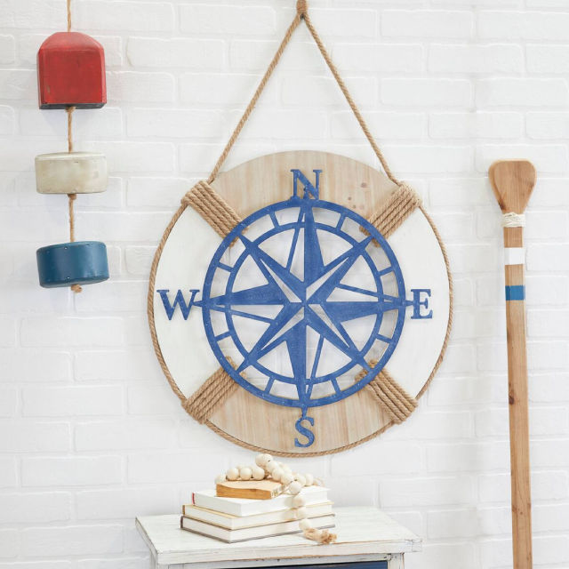 Décoration murale de roue de bateau nautique en bois bleu conçu sur mesure pour la maison salon fournitures en vrac pour l'Inde