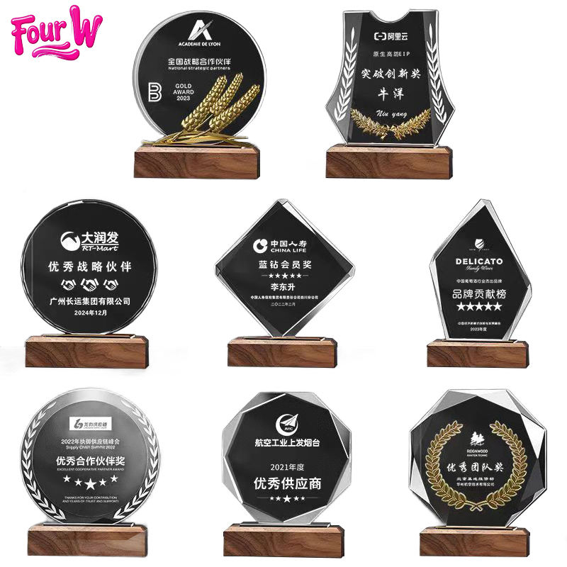 Product Name::Black Walnut Solid Wood Crystal Trophy