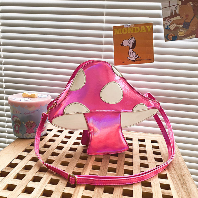 Conçu sur mesure drôle mignon dessin animé PU champignon forme sac de messager pour les filles fermeture éclair polyester géométrique à la mode dame