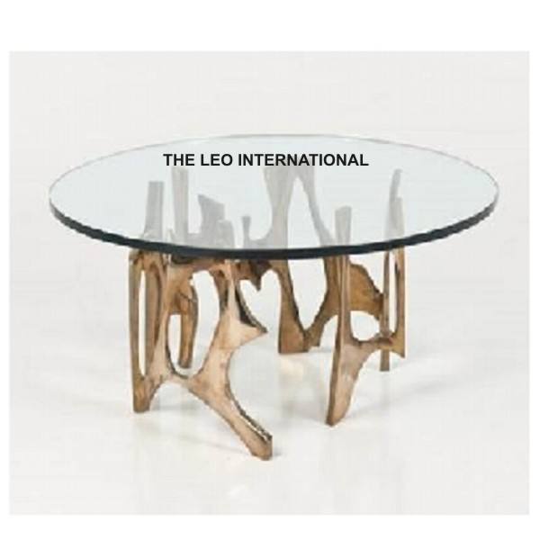 Table basse en or sur mesure avec plateau en verre, design unique et moderne, table décorative d'intérieur en aluminium, style artisanal unique