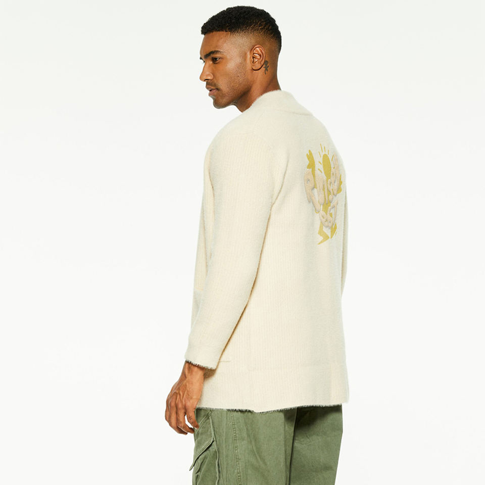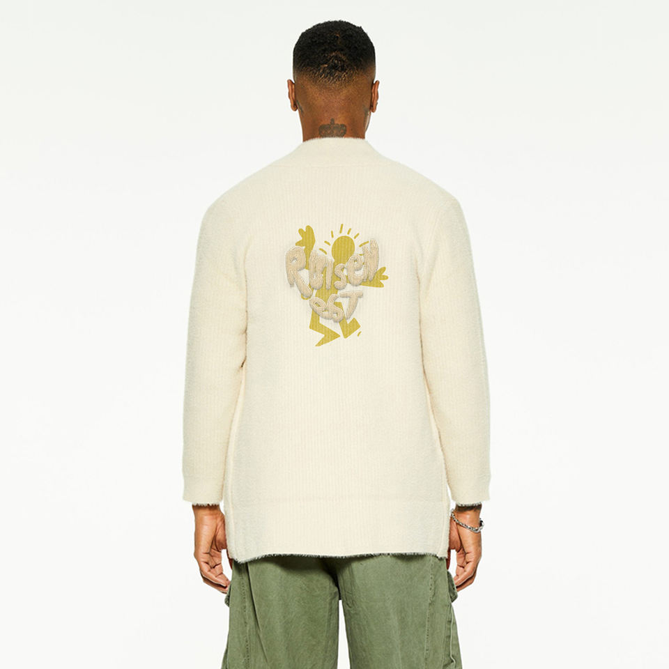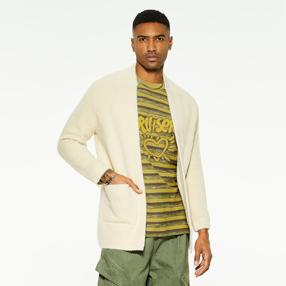 Cardigan en laine pour homme, design personnalisé, tricoté à épaules tombantes, vente en gros, cardigan long pour homme