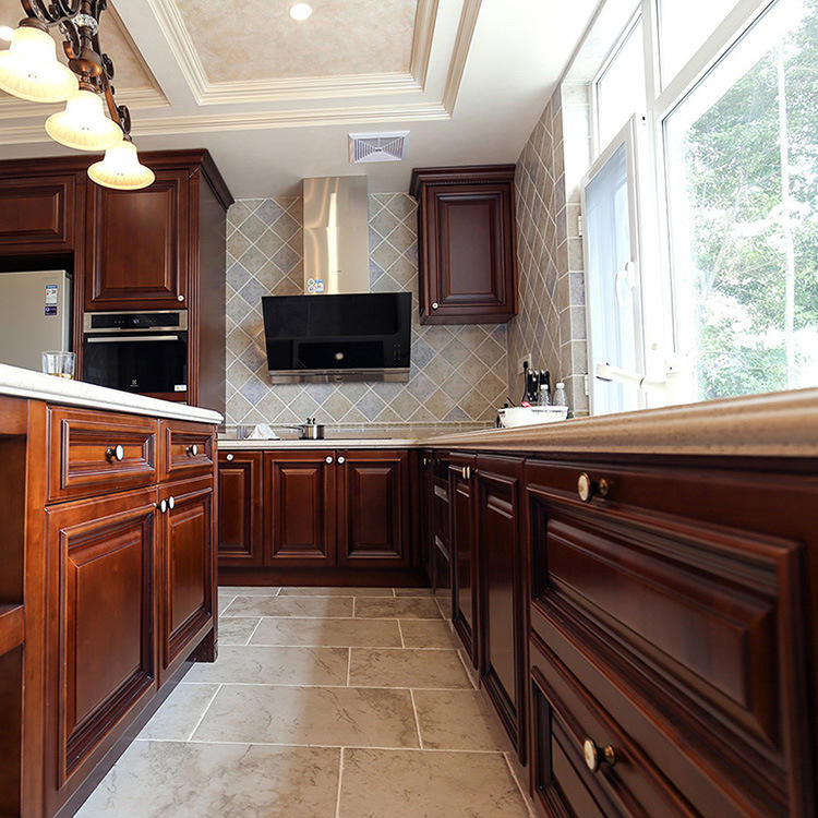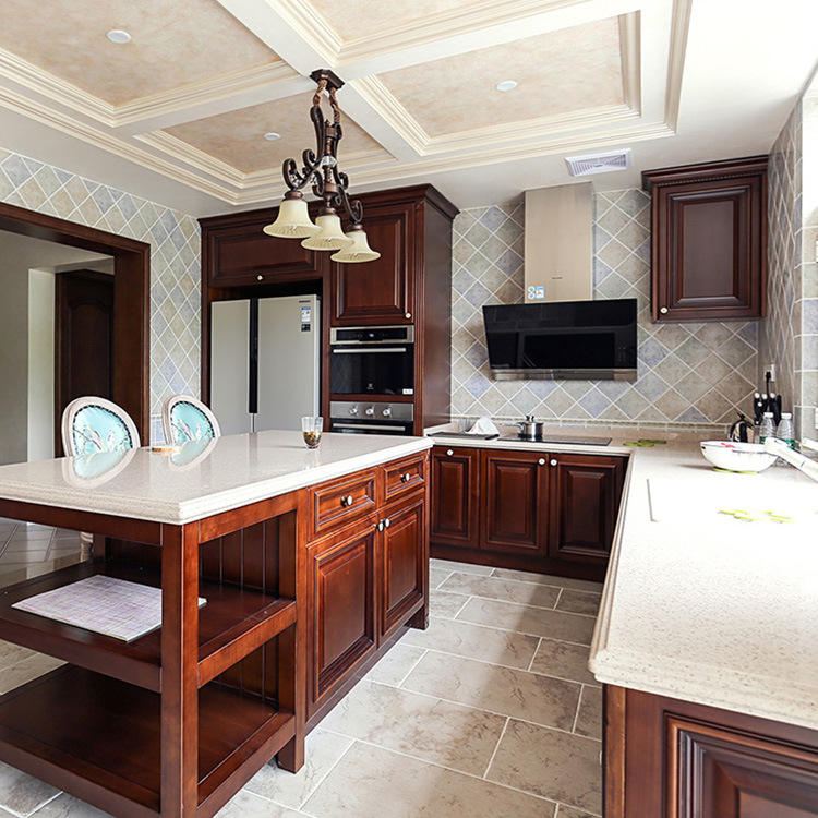 Armoire de cuisine moderne en forme de L conçue sur mesure Armoires modulaires en bois de cerisier de style ferme en bois massif naturel pour cuisines