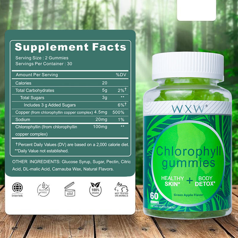 Chlorophylle organique personnalisée bonbons gommeux supplément de gestion du poids avec avantages pour la santé de la peau efficacité antioxydante