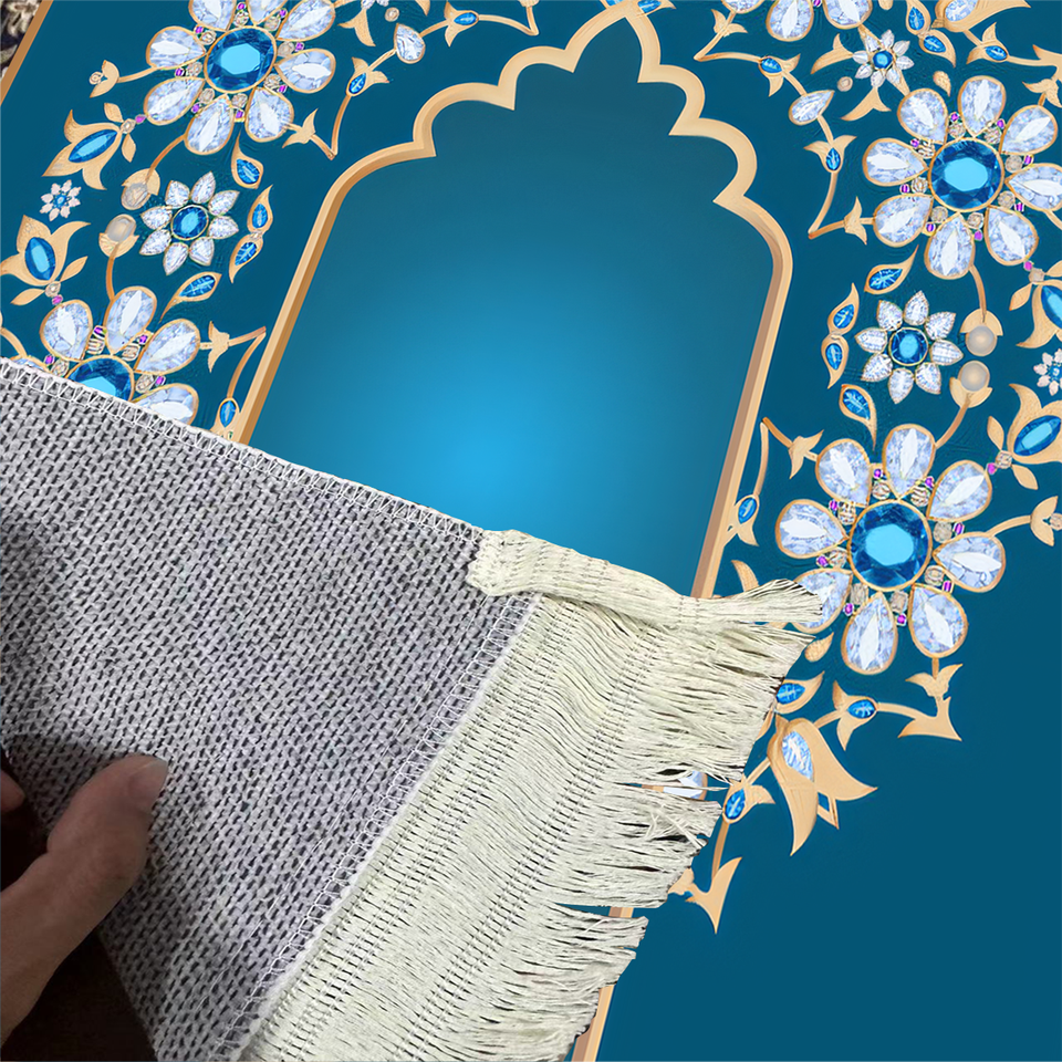 Tapis de prière portable conçu sur mesure pour adultes, tapis en polyester épais et moelleux à pampilles direct d'usine pour l'islam et les musulmans turcs