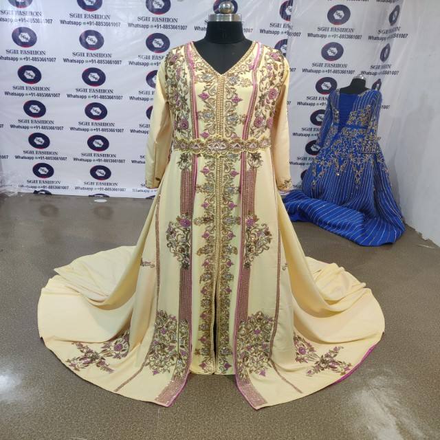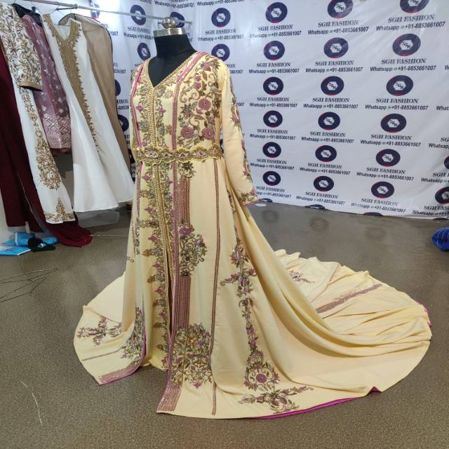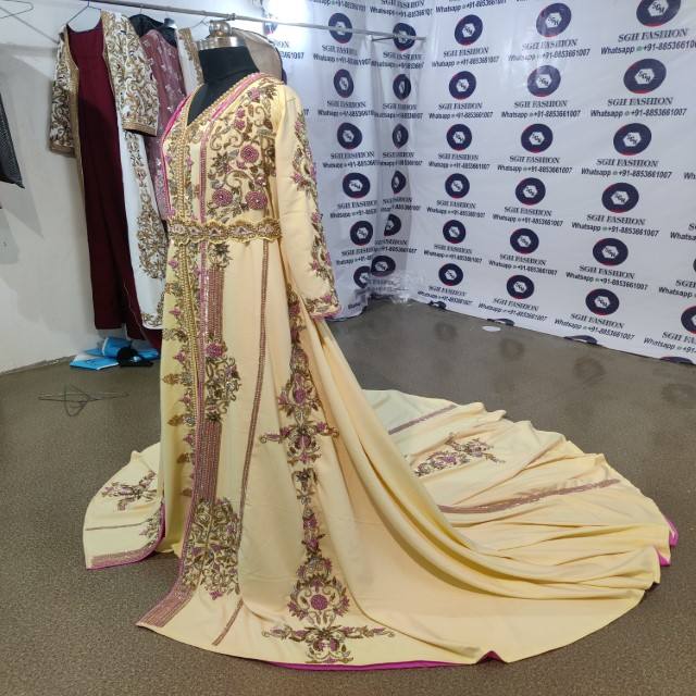 Conçu sur mesure traditionnel musulman algérien caftan robe de haute qualité importé crêpe été printemps longue Abaya robe Hand-Bloom