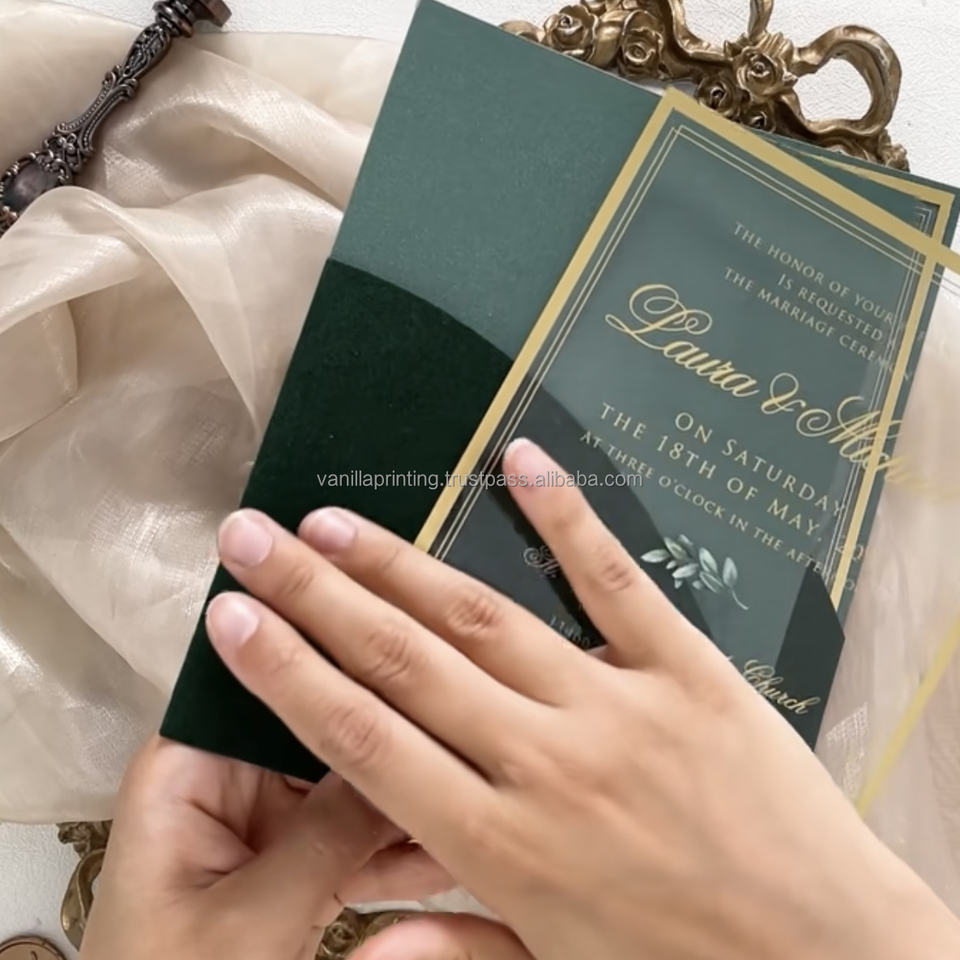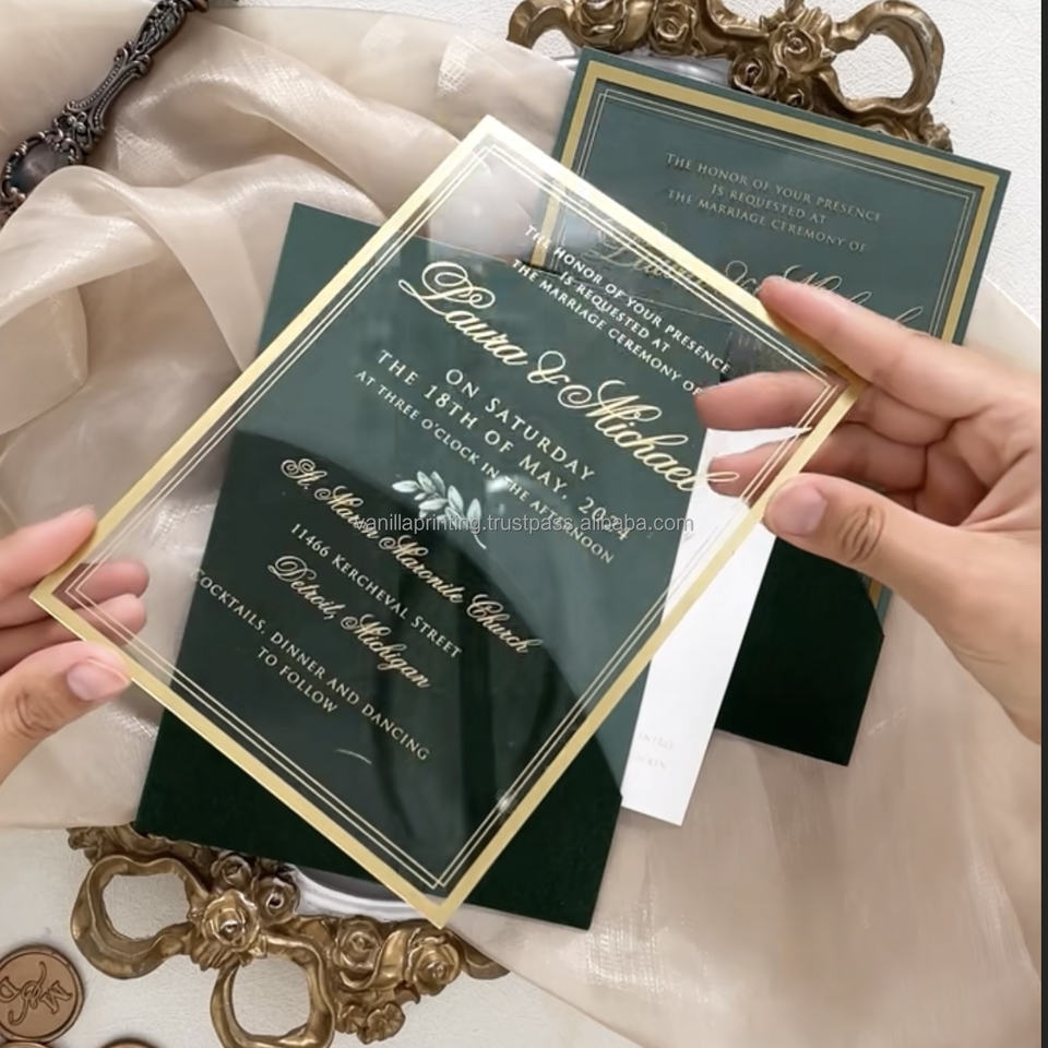 Carte d'invitation personnalisée en acrylique transparent pour mariage, anniversaire, Noël, Saint-Valentin, avec estampage à chaud doré et impression sérigraphique