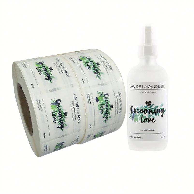 Étiquette en verre transparent conçue sur mesure Logo original autocollant privé huile d'argan vinyle adhésif pour cosmétiques