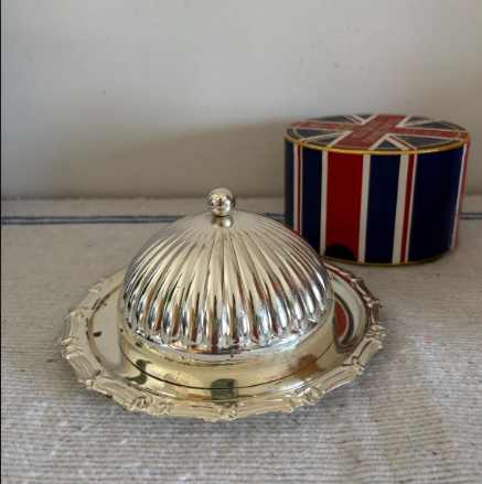 Beurrier en acier inoxydable de style vintage sur mesure, couleur métallisée argentée, aspect brillant, pour plats de table de cuisine, assiettes