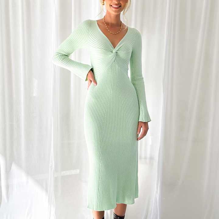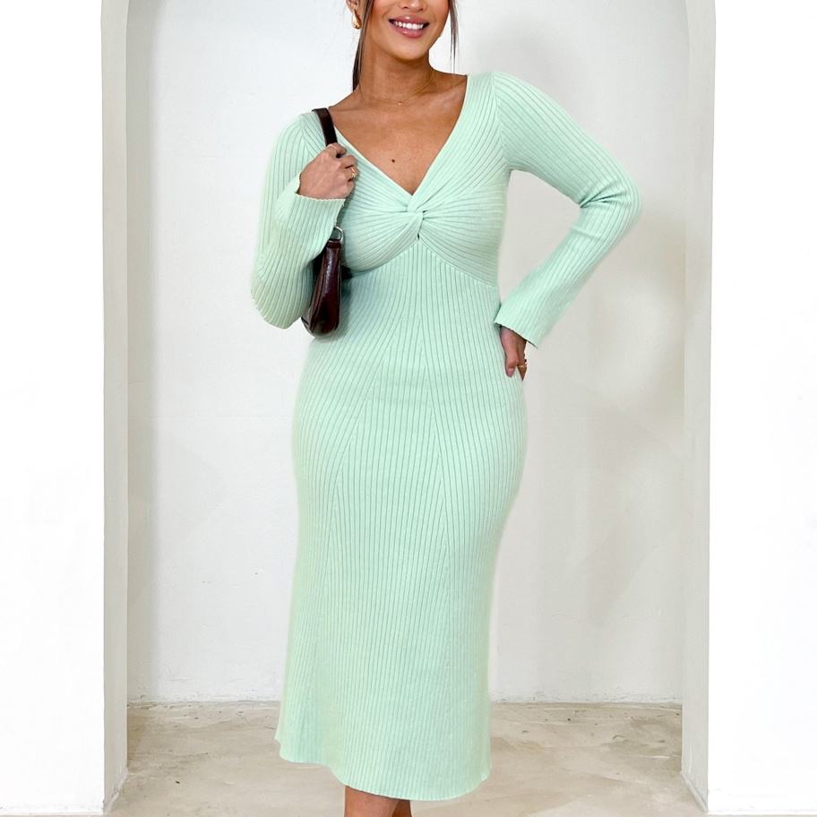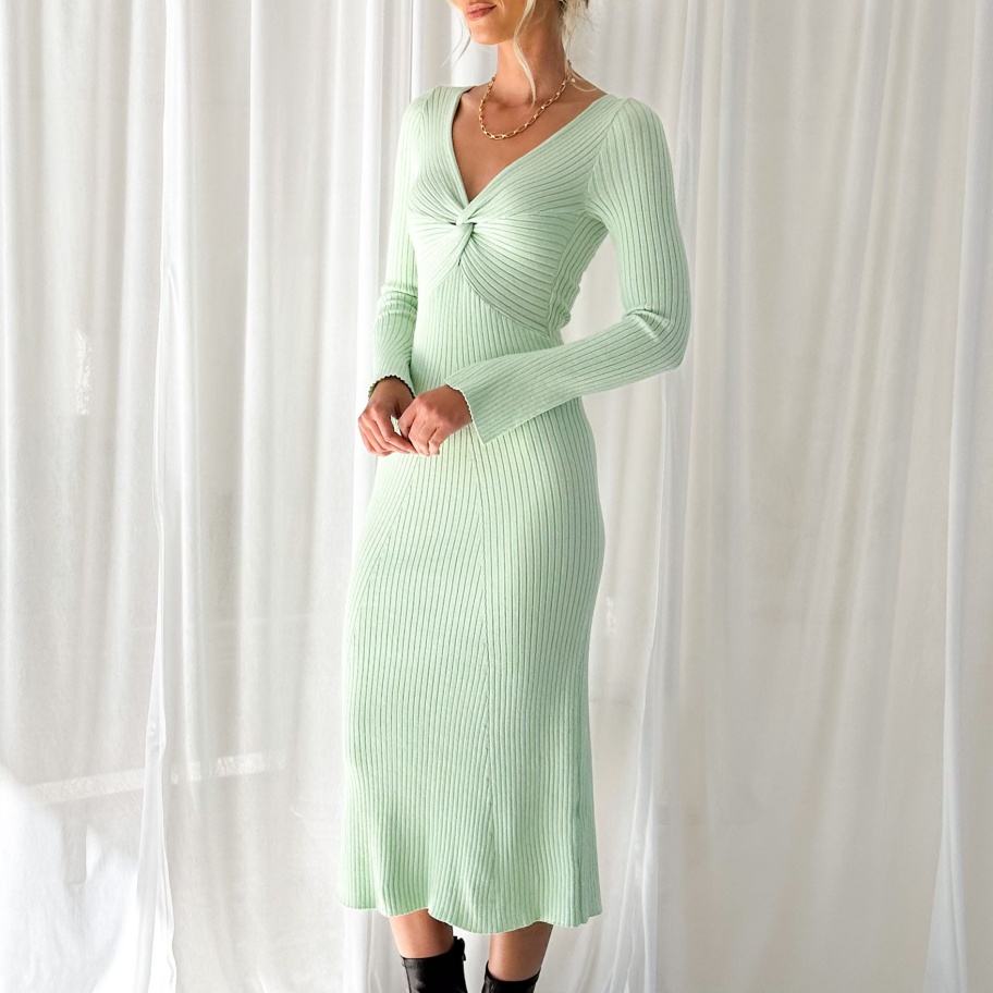 Robe midi pour femme, conçue sur mesure, pour l'automne et l'hiver, à manches longues, en tricot côtelé, décontractée, coupe droite, fabricant de vêtements en tricot