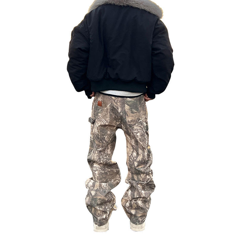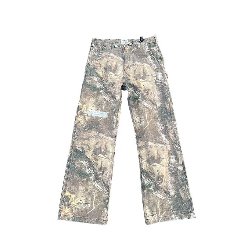 Jean en denim camouflage imprimé sur toute la surface, style streetwear ample, délavé clair, décontracté et tendance pour homme