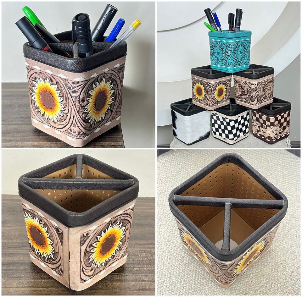 Nom du produit:Boîte de rangement pour stylos en cuir travaillé à la main
