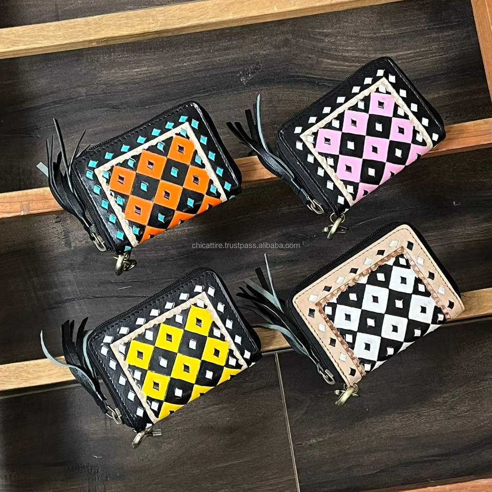 Nom du produit:Mini porte-monnaie et porte-cartes en cuir à carreaux travaillé à la main