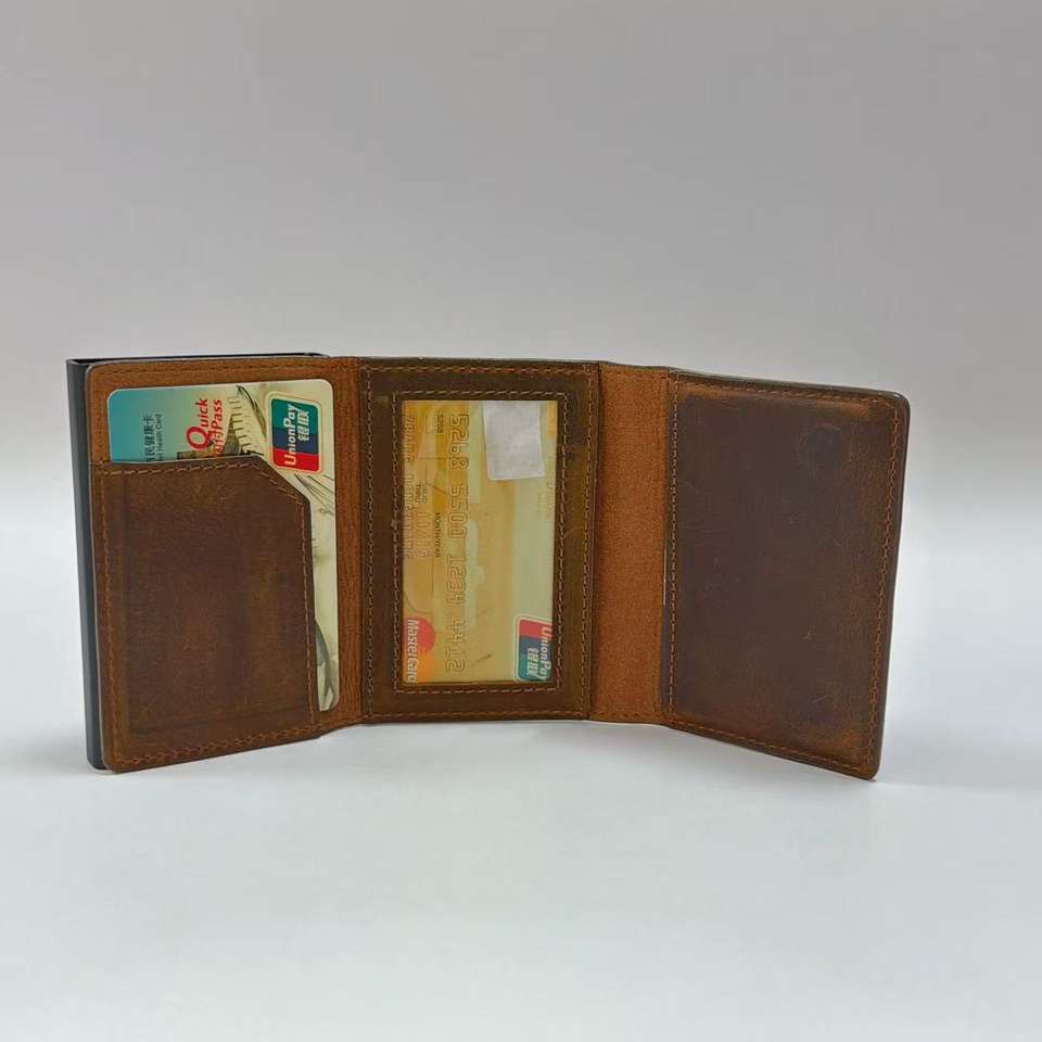 Portefeuille pour homme personnalisé, design élégant, en aluminium fin avec blocage RFID, en cuir véritable pour le rangement des cartes de crédit