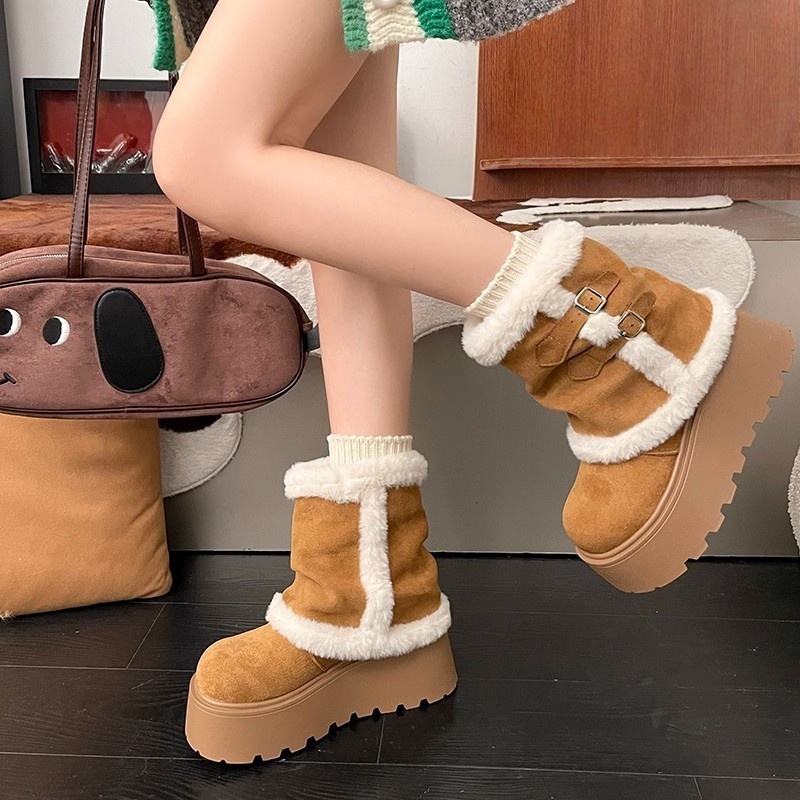 Bottes de neige personnalisées pour femmes, doublées de polaire, chaudes, en daim, de haute qualité, pour l'extérieur, bottes d'hiver