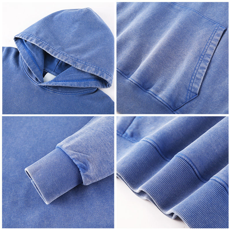 Sweats à capuche épais à fermeture éclair intégrale, lavés à l'acide, avec des motifs personnalisés, appliqués et brodés