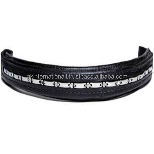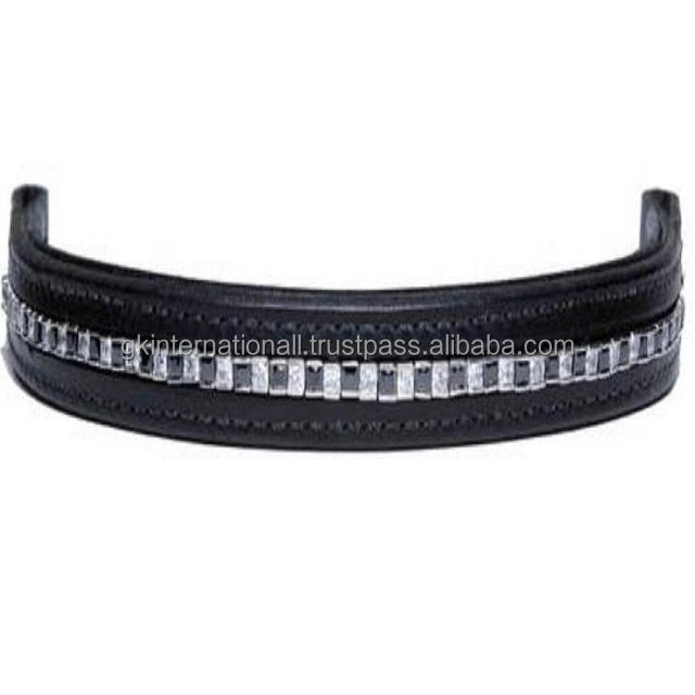 Dessins et tailles personnalisés, rembourrage en cuir de vache souple fait à la main, bande de sourcil de cheval avec 1 rangée de chaîne en argent, toutes les tailles disponibles
