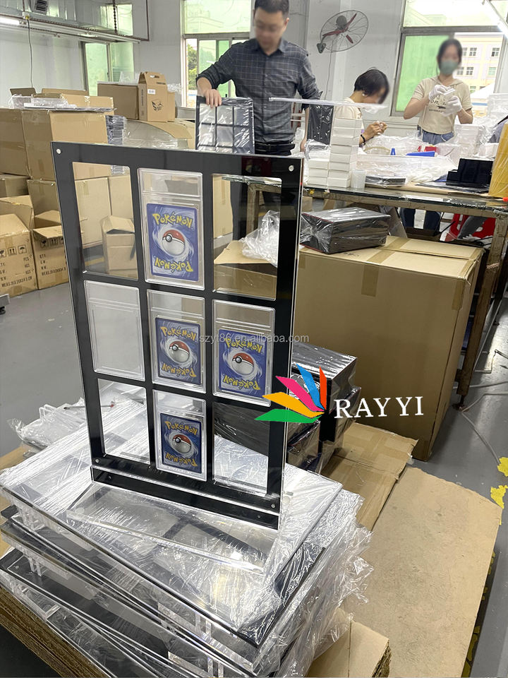 Custom Desktop 9 Slot Acrylic Pokemon Graded Sports Card Slab Holder Aacrylic PSAed Cards Display Stand