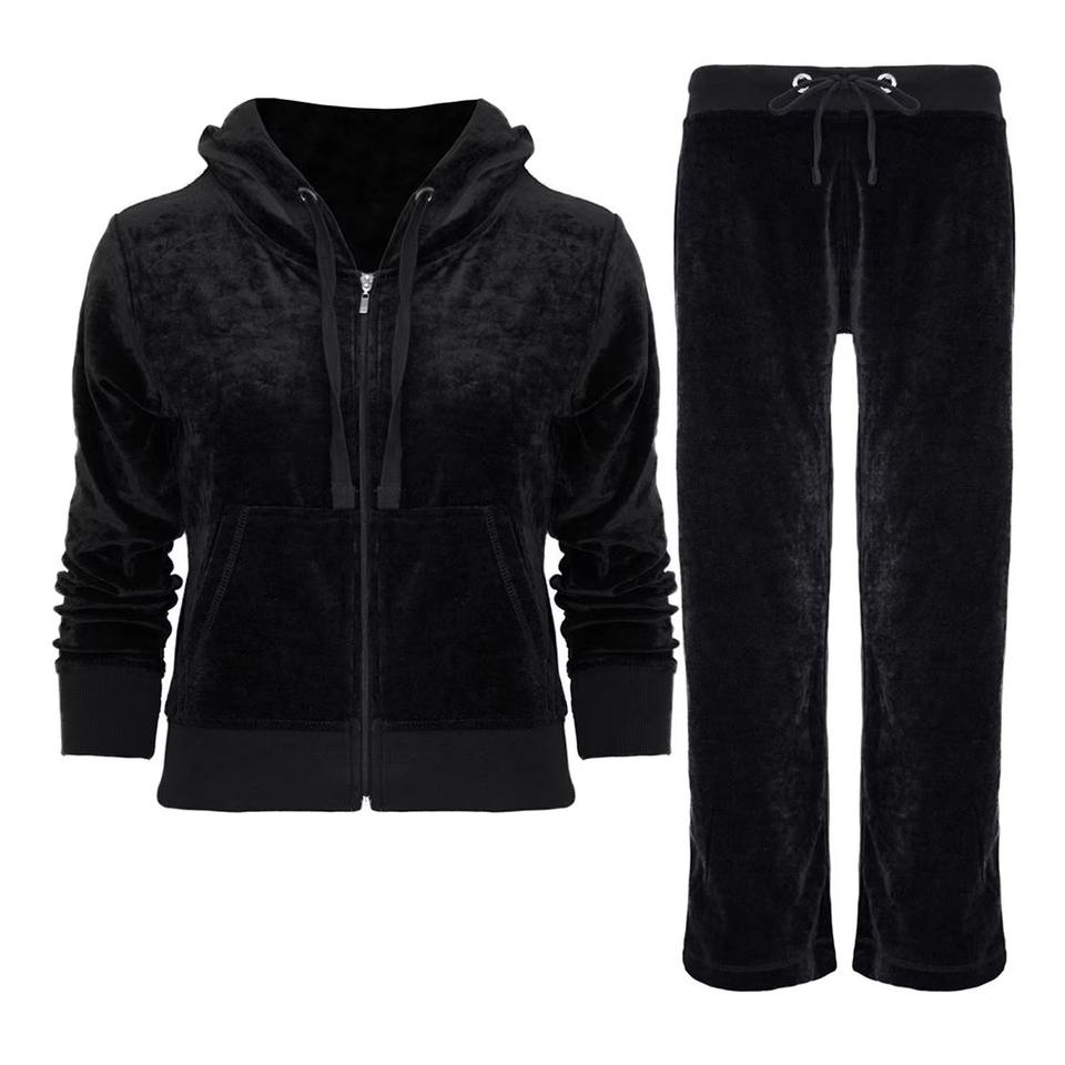 Ensemble de survêtement décontracté en velours deux pièces pour femme avec sweat à capuche et pantalon de jogging orné de strass et de diamants personnalisés