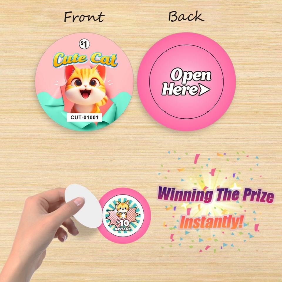 Billets à gratter personnalisés à découpe sur mesure pour événements de collectes de fonds, en papier opaque avec technologie anti-fraude