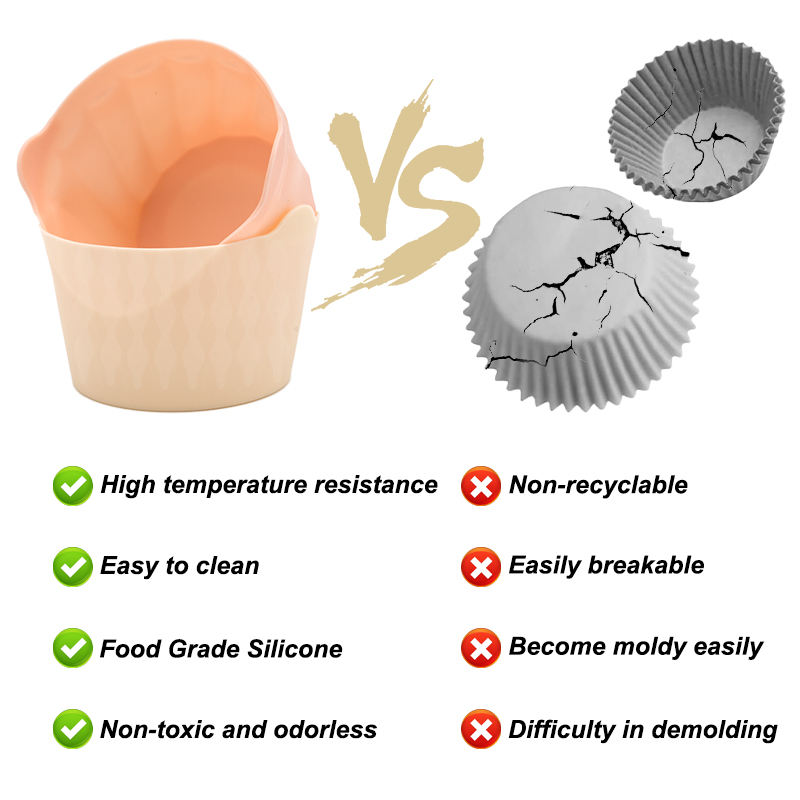 Ensemble différent de moules à muffins personnalisés, moules à gâteaux réutilisables de grande taille en silicone sans BPA pour la cuisson