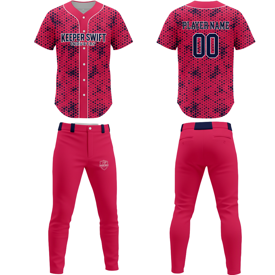 Uniforme de baseball personnalisé à manches courtes en polyester respirant à séchage rapide, imprimé numériquement, col en V surdimensionné, double sangle en maille