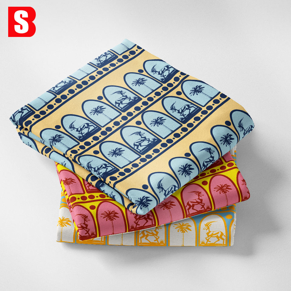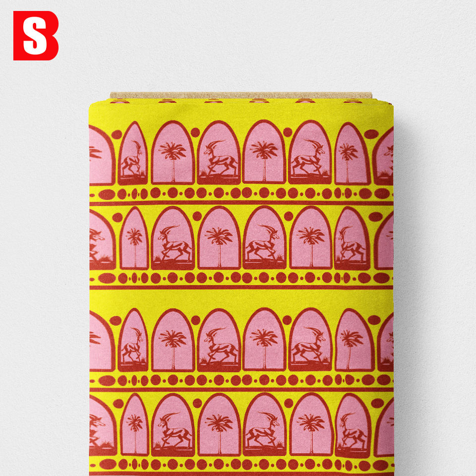 Impression numérique personnalisée sur tissu 100% coton, motif gazelles et palmiers, imprimé pour vêtements féminins