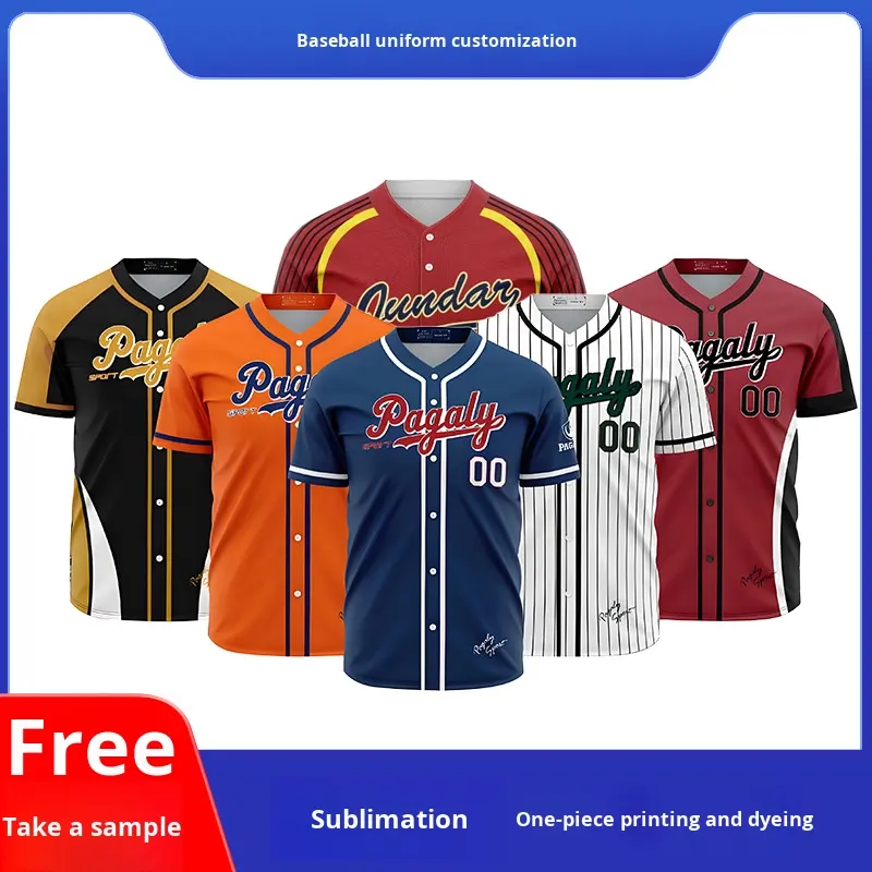 Maillot de baseball et softball personnalisé à impression numérique antibactérien, col en V, 100% polyester, compétition, veste de sport pour hommes et femmes