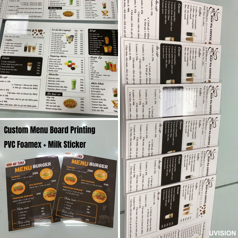 Panneau de menu en mousse PVC imprimé numérique personnalisé, panneau de menu rigide pour restaurant