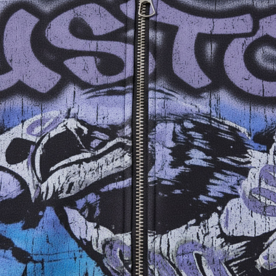 Sweat à capuche zippé personnalisé avec impression numérique, effet vieilli, 400 g/m², coupe ample, style vintage, délavé à l'acide, pull-over oversize, écologique, ODM