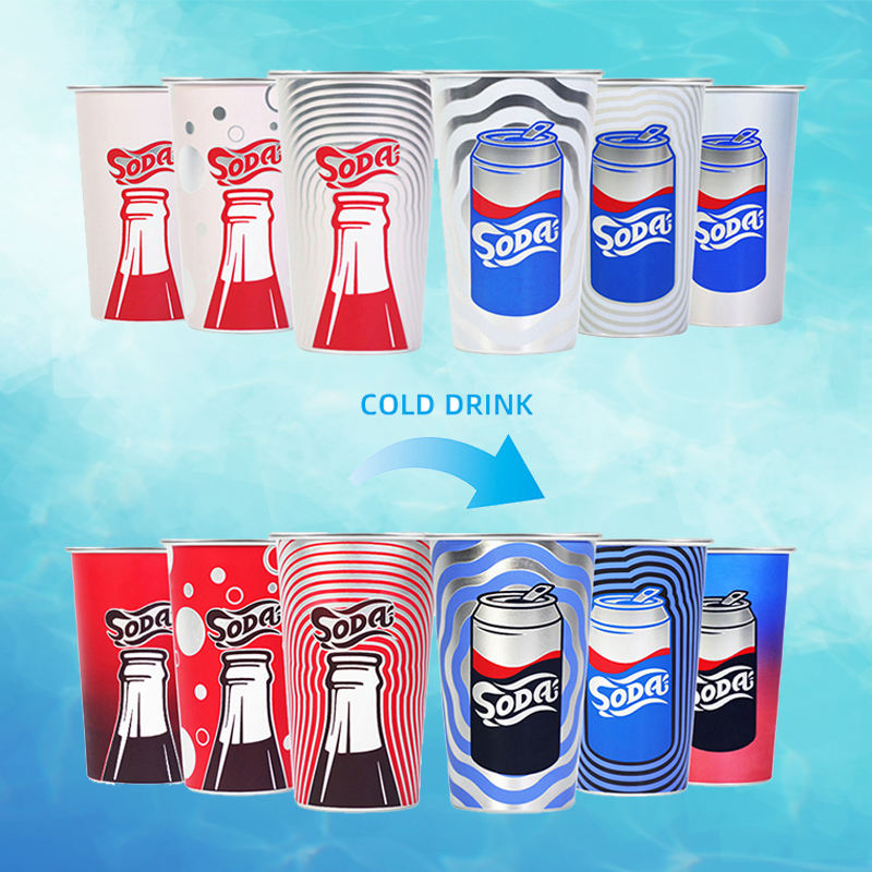 Gobelet en aluminium jetable personnalisé de 16 oz, gobelet en métal recyclable de 480 ml, gobelet à bière en aluminium changeant de couleur avec les boissons froides