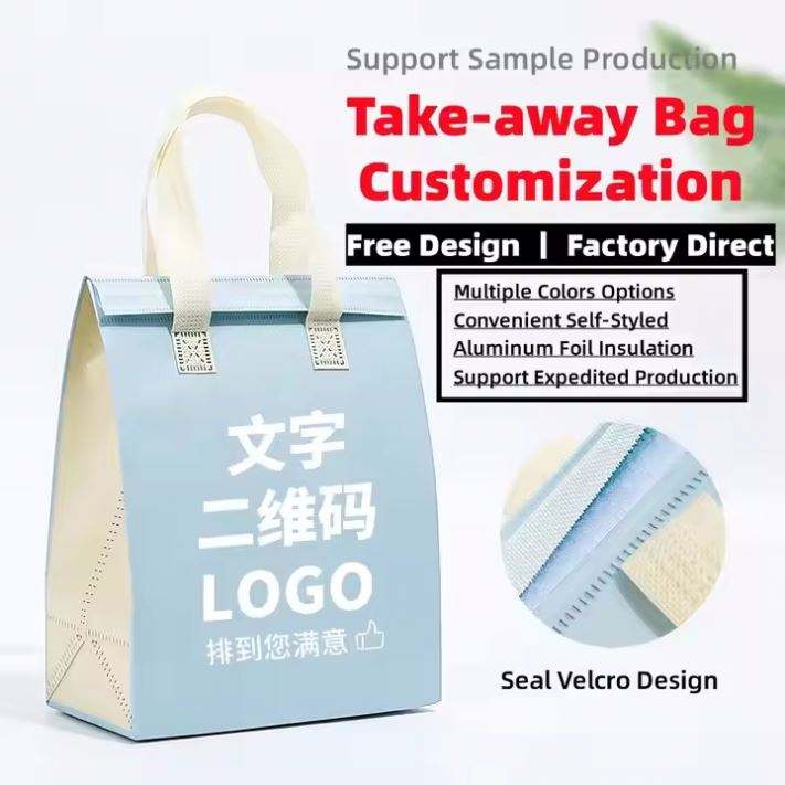 Sac isotherme personnalisé en aluminium jetable non tissé, portable, pour livraison de repas et boissons chaudes ou froides