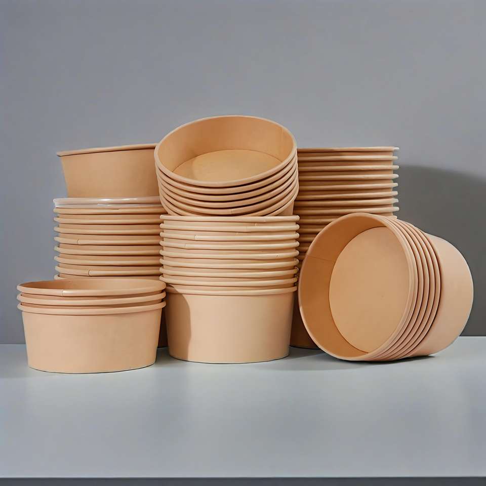 Saladier en papier kraft écologique jetables personnalisés Récipient pour fast-food forme ronde biodégradable à emporter pour l'artisanat des sushis