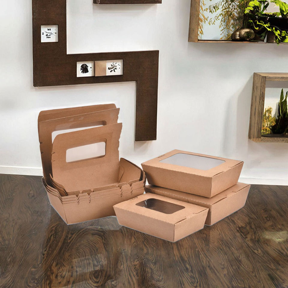 Boîtes à lunch jetables personnalisées en carton kraft pour bento, sushi, salade, avec revêtement UV, livraison gratuite, stock, emballage alimentaire à emporter avec fenêtre