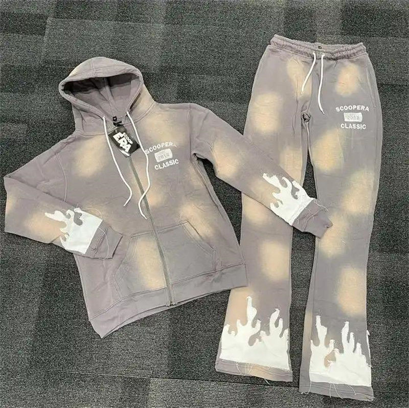 Ensemble survêtement pour homme en molleton French Terry, avec logo appliqué effet vieilli, délavé soleil et délavé à l'acide, style streetwear
