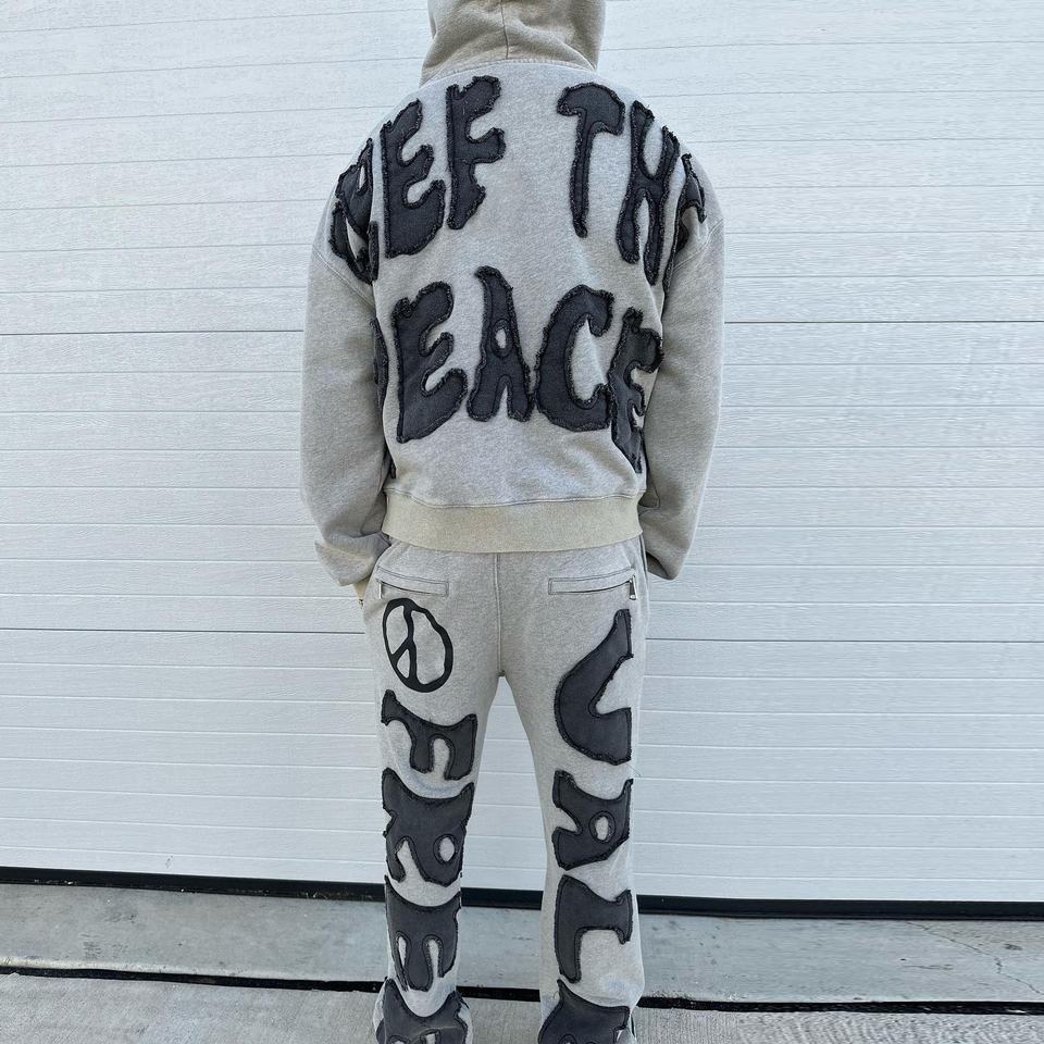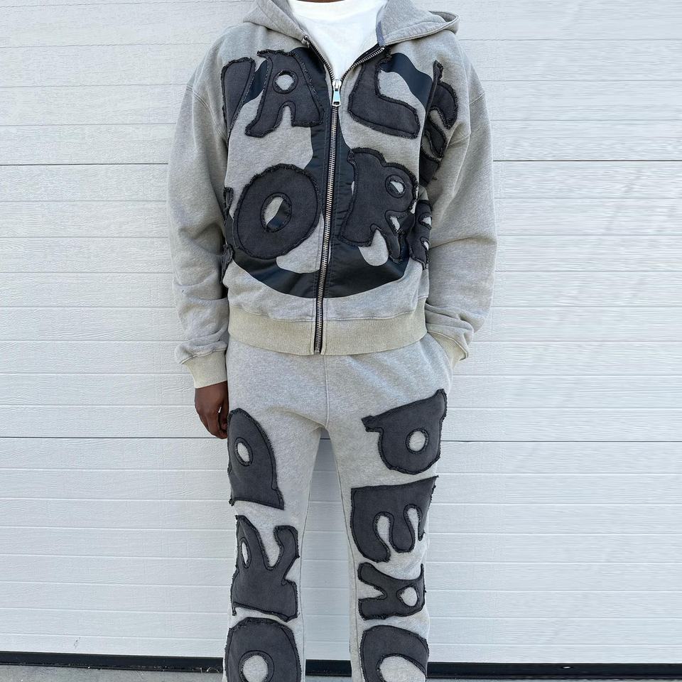 Ensemble deux pièces en coton délavé à l'acide vieilli personnalisé Pantalon de survêtement évasé pour hommes Survêtements à capuche imprimés décontractés d'hiver Vêtements d'extérieur