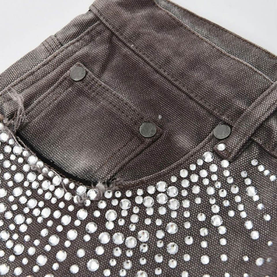 Shorts en jean pour homme personnalisés, coupe ample, style hip-hop, délavés à l'acide, effet vieilli, ornés de strass et de pierres, avec embellissements en diamant