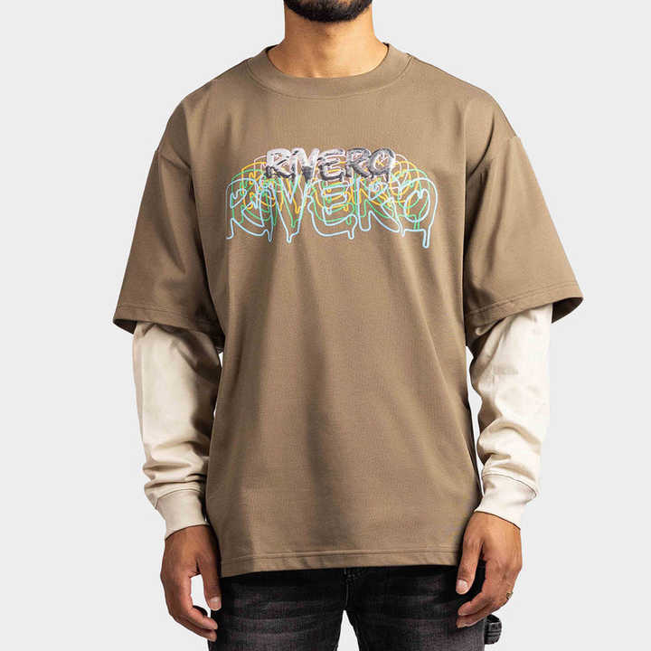 T-shirts graphiques d'œuvres d'art en détresse personnalisés T-shirt à manches longues 100% coton double couche réversible lourd pour homme
