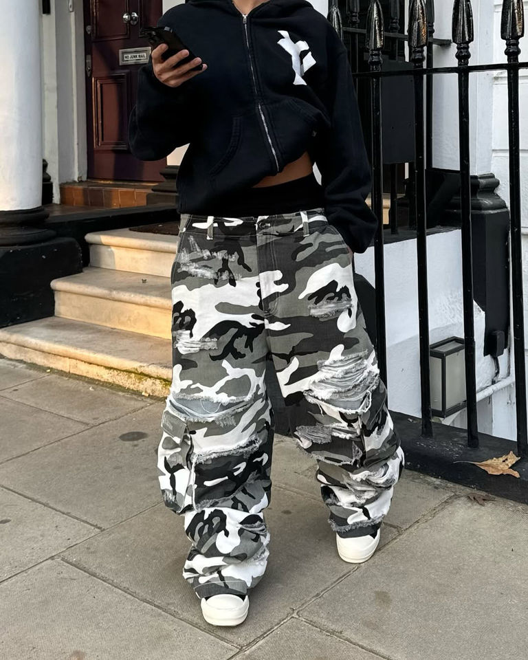 Pantalon Cargo Camouflage Homme Effet Vieilli Personnalisé Nouveau Design Style Combo Streetwear 2026