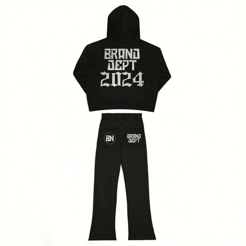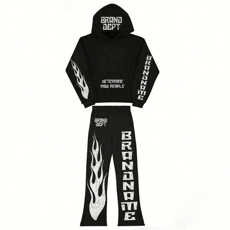Ensemble de jogging évasé patchwork en coton vieilli personnalisé pour hommes, sweat à capuche court, pantalon de survêtement, broderie, appliques, décontracté pour l'automne