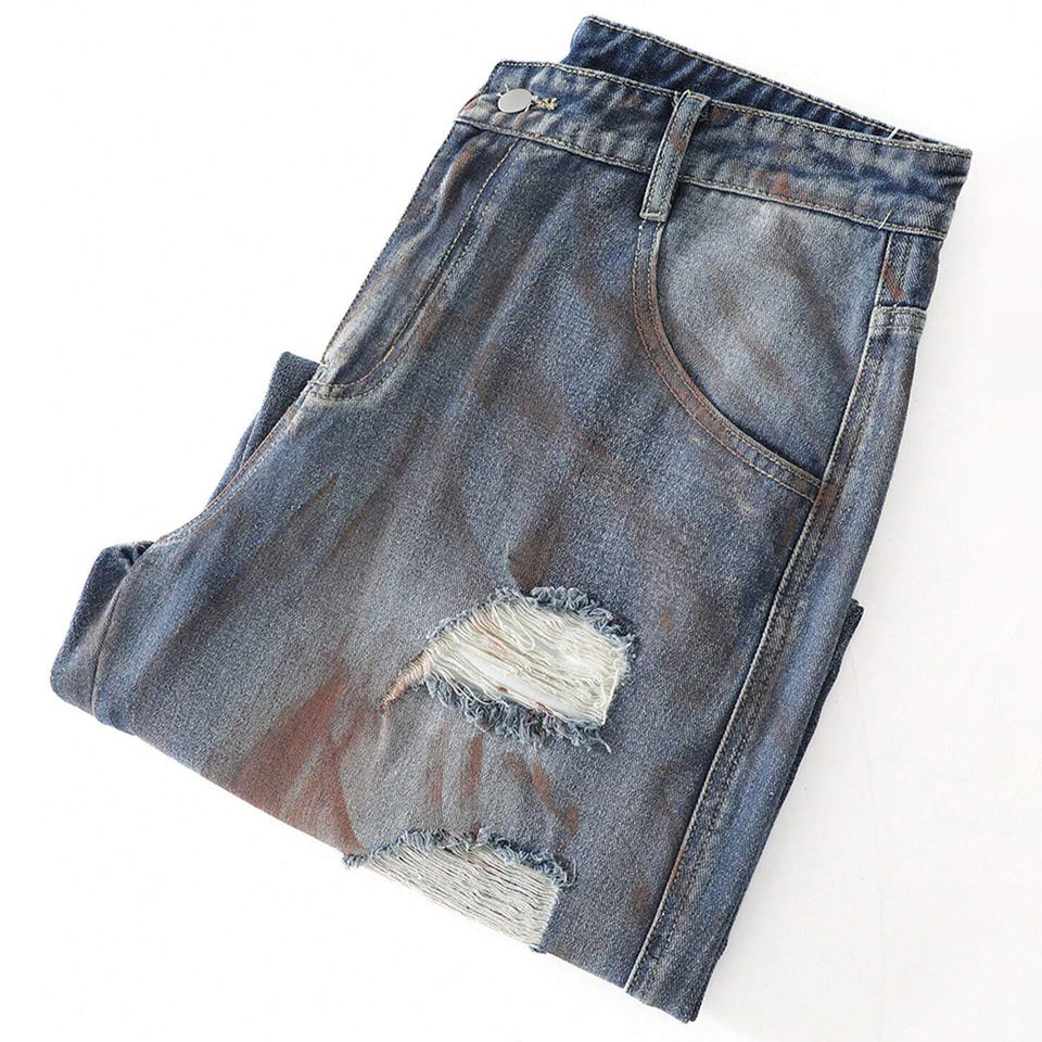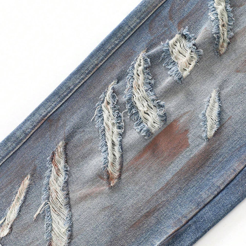 Shorts en jean déchirés et délavés personnalisés, en tissu 100% coton biologique épais, style streetwear tendance pour hommes