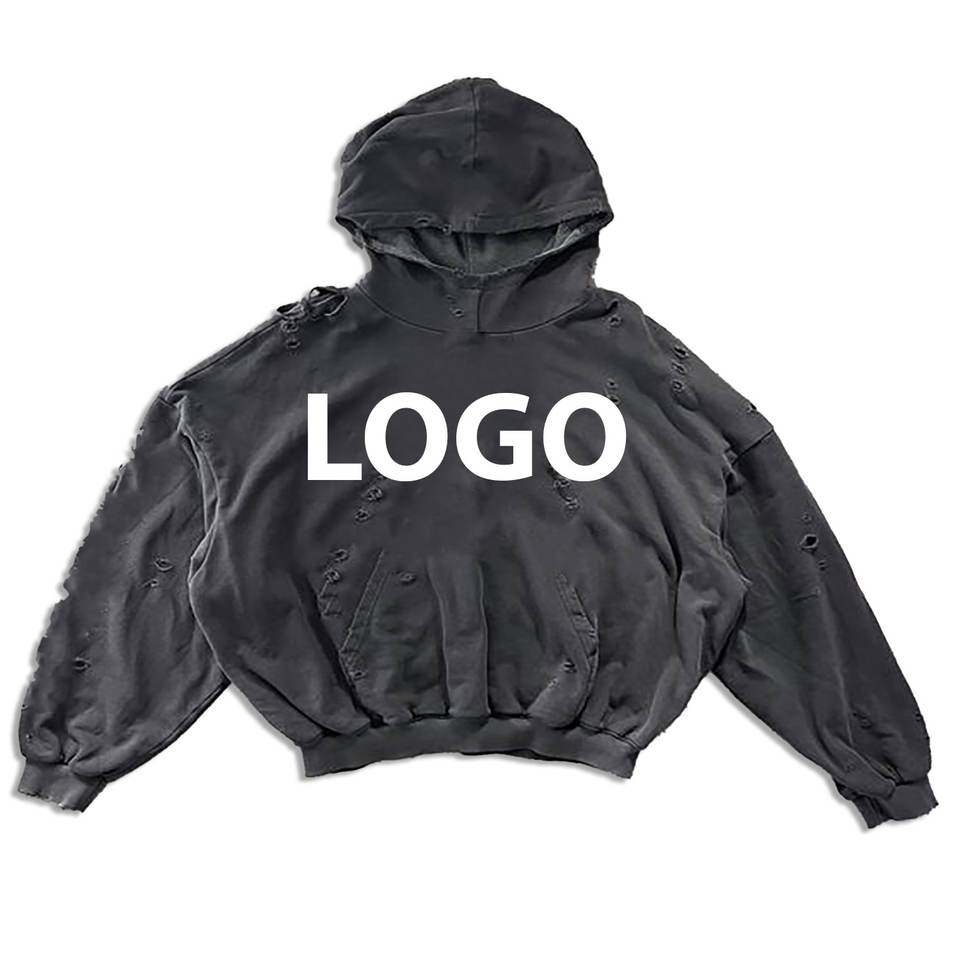 Sweat-shirt pour homme en coton français lourd 100% écologique, délavé à l'acide, vieilli, déchiré, vintage, décoloré au soleil, personnalisé
