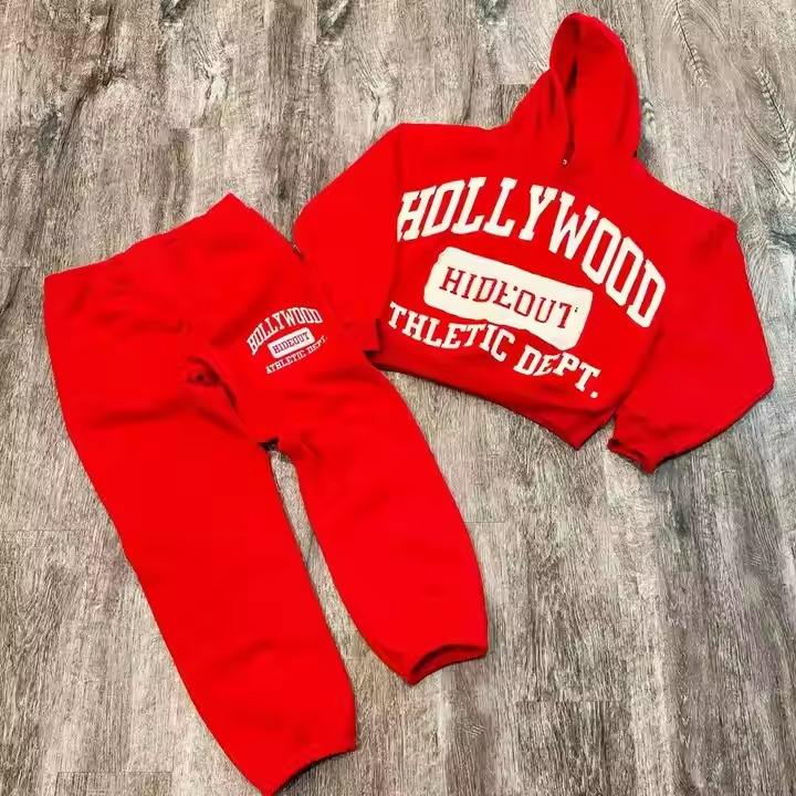 Streetwear personnalisé avec logo brodé en détresse Ensembles de deux pièces Survêtement lourd Ensemble de pantalon de survêtement et de sweat à capuche droits