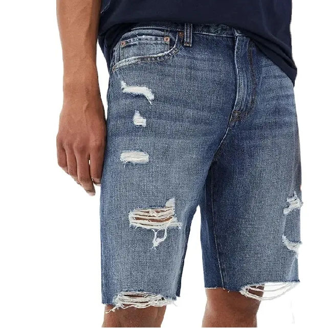 Jorts personnalisés à la mode pour hommes brodés en détresse Baggy Jorts de haute qualité lavés Shorts en jean à double ourlet lavés à l'acide