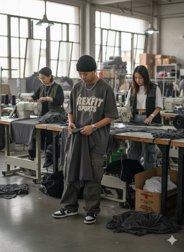 T-shirts pour hommes personnalisés avec broderie vieillie, coupe oversize, épaules tombantes, effet soleil délavé